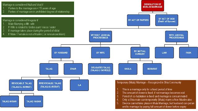 Below image is a quick representation of various ways a Muslim Male / Female residing in India can dissolve their marriage and seek divorce as per the Muslim Personal Laws